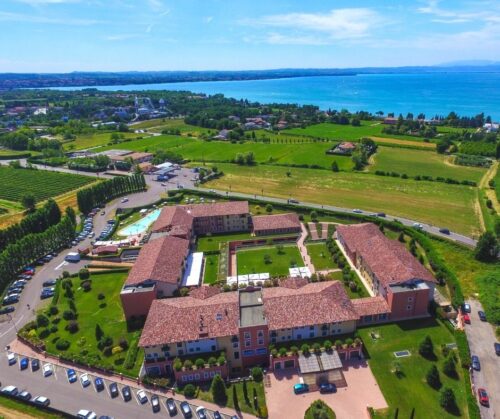 A few steps from Lake Garda, in the centre of the parks. Perfect location for holidays, events or business. The rooms are arranged in a courtyard in 5 connected pavilions, the rooms overlook a wonderful and well-kept internal garden and are embellished by an exciting view of the lake.